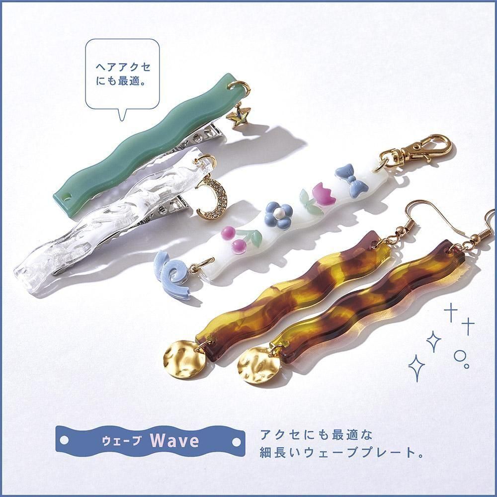 ウェーブの形がオシャレな6種類のプレートと、スイーツ系などの20種類のパーツが揃っています。