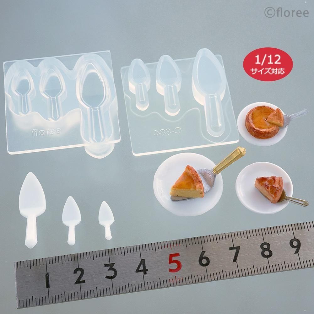 フリーハンドで作るのが困難な3サイズのミニチュアケーキサーバモチーフが手軽に作れます。