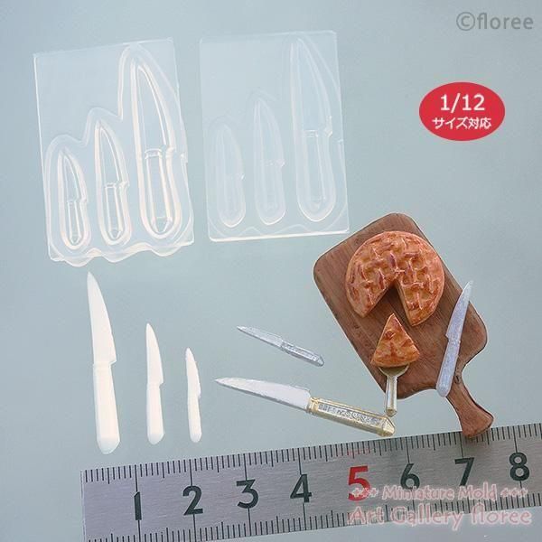 フリーハンドで作るのが困難な3サイズのミニチュアケーキナイフモチーフが手軽に作れます。