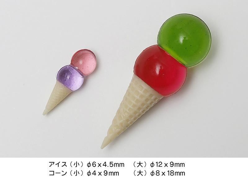 アイスとコーンのモチーフがミニチュアで各2サイズ作れます。