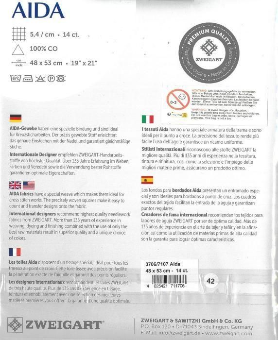 ツバイガルト 14カウント シュテルンアイーダ 色番号7107 プリカット刺しゅう布48×53cm