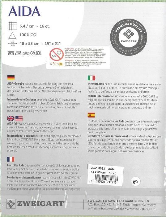 ツバイガルト 16カウント アイーダ 色番号6083 プリカット刺しゅう布48×53cm