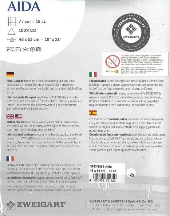 ツバイガルト社アイーダは、クロスステッチに最適な特殊な織り方で仕上げられた高品質の刺繍用生地です。
