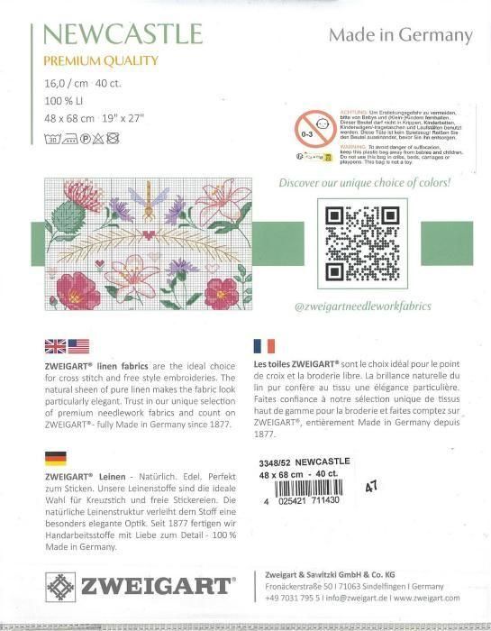 ツバイガルト社ニューカッスルは、様々な刺しゅうに最適な平織りのリネン生地です。